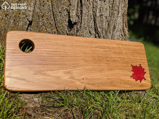 Reclaimed Oak with Rustic Red Maple Leaf Epoxy Inlay (rectangle) II
