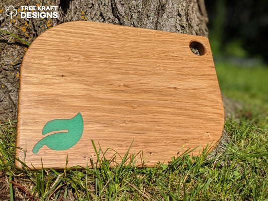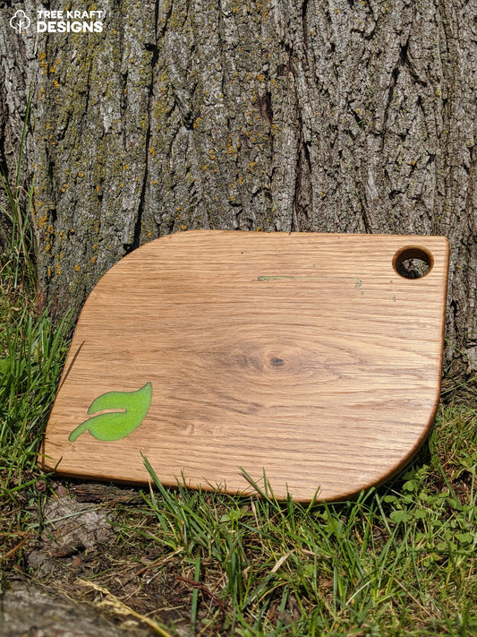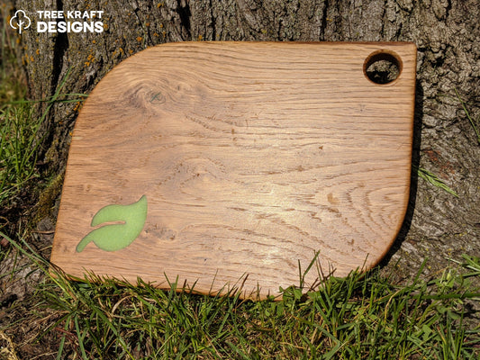 Leaf Shaped Serving Board with Emerald Green Leaf Epoxy Inlay (Reclaimed Oak)