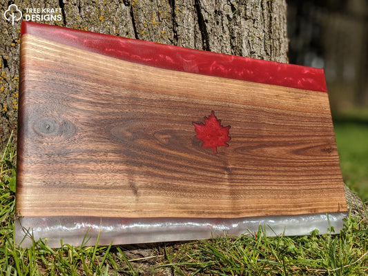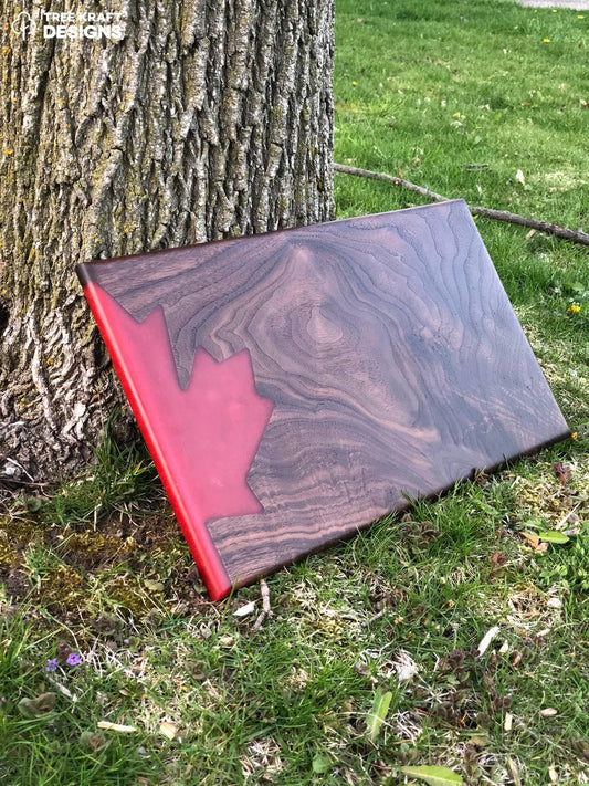 Dark Walnut with Red & White Epoxy with a Rustic Red Maple Leaf Epoxy Inlay