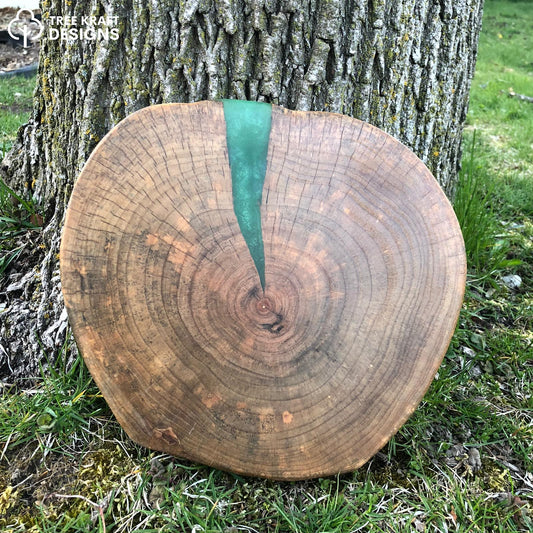 Leaf Shaped Serving Board with Thin Apple Green Epoxy (Reclaimed Oak)